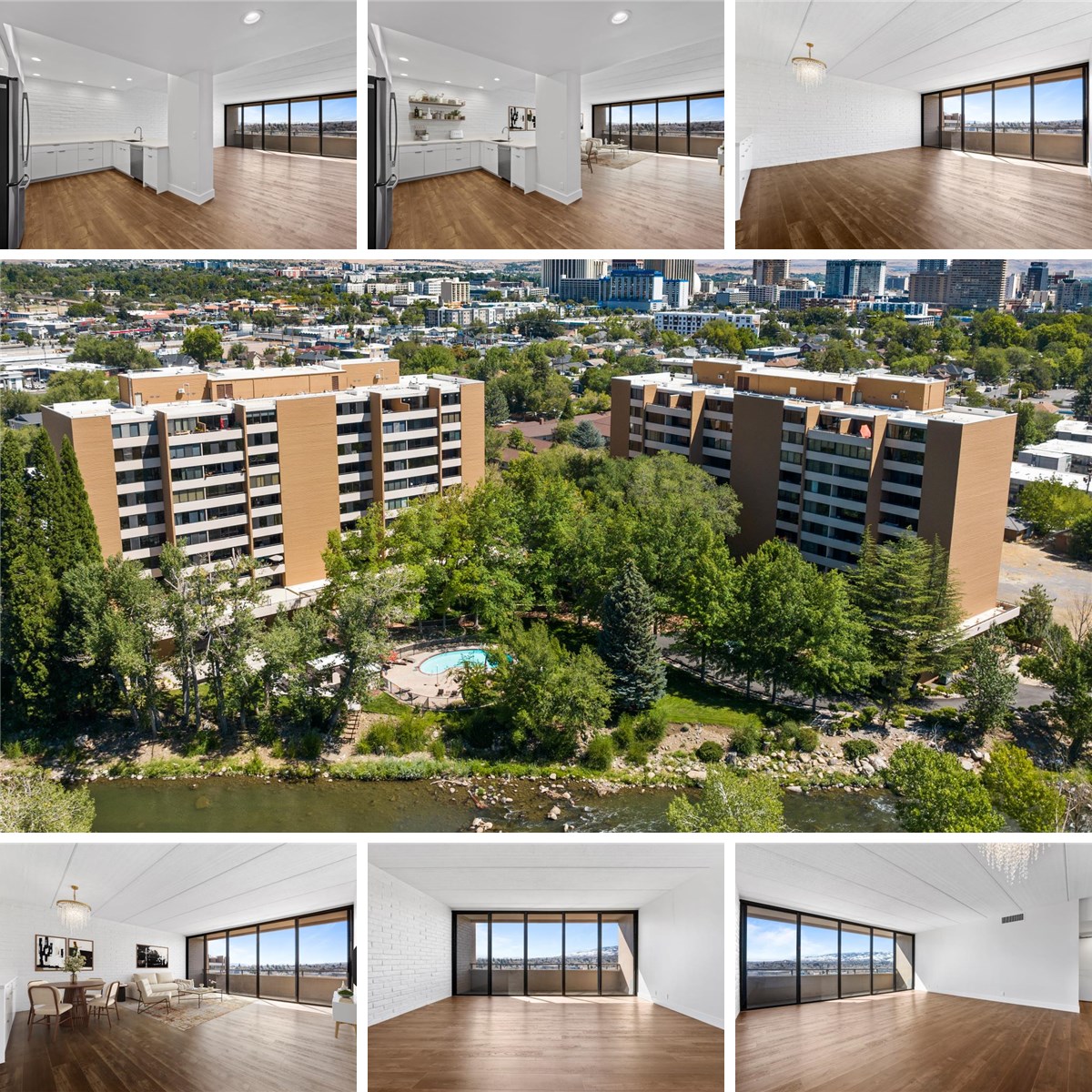 Located on the 10th floor of Building A, this completely remodeled residence enjoys breathtaking views of the Truckee River and the Sierras from the floor to ceiling living room windows. One bedroom condo with an office that could easily be a SECOND BEDROOM. This quiet condo is located steps from the river and just a short walk or bike ride to restaurants, downtown, local Farmer's Markets and events at Idlewild Park. This spectacular home underwent a 100K+- professional remodel completed in August of 2024, which will now be enjoyed & appreciated by some lucky new owner. A Complete Remodel clear down to the metal studs includes a SMOOTH drywall finish, new paint and beautiful wide, luxury vinyl plank flooring ... and no more popcorn ceilings!! The kitchen was opened, the countertop extended, and the soffit ceiling was removed and upgraded lighting added. All new kitchen appliances PLUS new washer and dryer. New and upgraded electrical and plumbing AND a new HVAC System. Enjoy the park-like grounds, pool, clubhouse w/work-out area & pool table, BBQ area and 24-hour security. Extra storage on the third floor. 1 car designated parking space in the secure/covered common garage area. The HOA includes: Heating, A/C, water, trash, pool, club house with gym area, gated common area parking, elevators, storage, secure mailboxes, and 24-hour security.