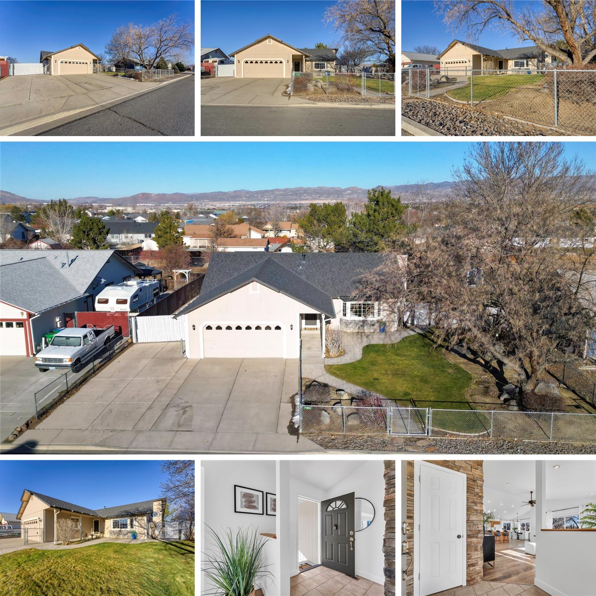 Nestled mere blocks away from Eagle Canyon Park and Yvonne Shaw Middle School, this spectacular single-story awaits! A 1486 sq ft open floor plan boasts a modern ambiance, complete with fresh paint and stunning LVP flooring. An airy living area curates ample natural light through soaring ceilings and large windows, where a stone wall acts as a wonderful focal point. The generous kitchen and dining area highlights exceptional space for both entertaining and day-to-day living, showcasing stainless steel appliances, abundant cabinetry, sleek countertops and a cozy breakfast bar. The primary suite offers convenient backyard access and a private bathroom with a luxurious shower accented by beautiful stone motifs. Two additional bedrooms provide excellent space for any purpose. Outside, enjoy a spacious, fully-fenced backyard with mature trees and functional outbuildings, including a second shed and 800 sq ft finished garage. Other noteworthy property features include RV parking and dump, designated laundry room, and ceiling fans throughout the home. If you're looking for comfortable contemporary living in an ideal location, look no further!
